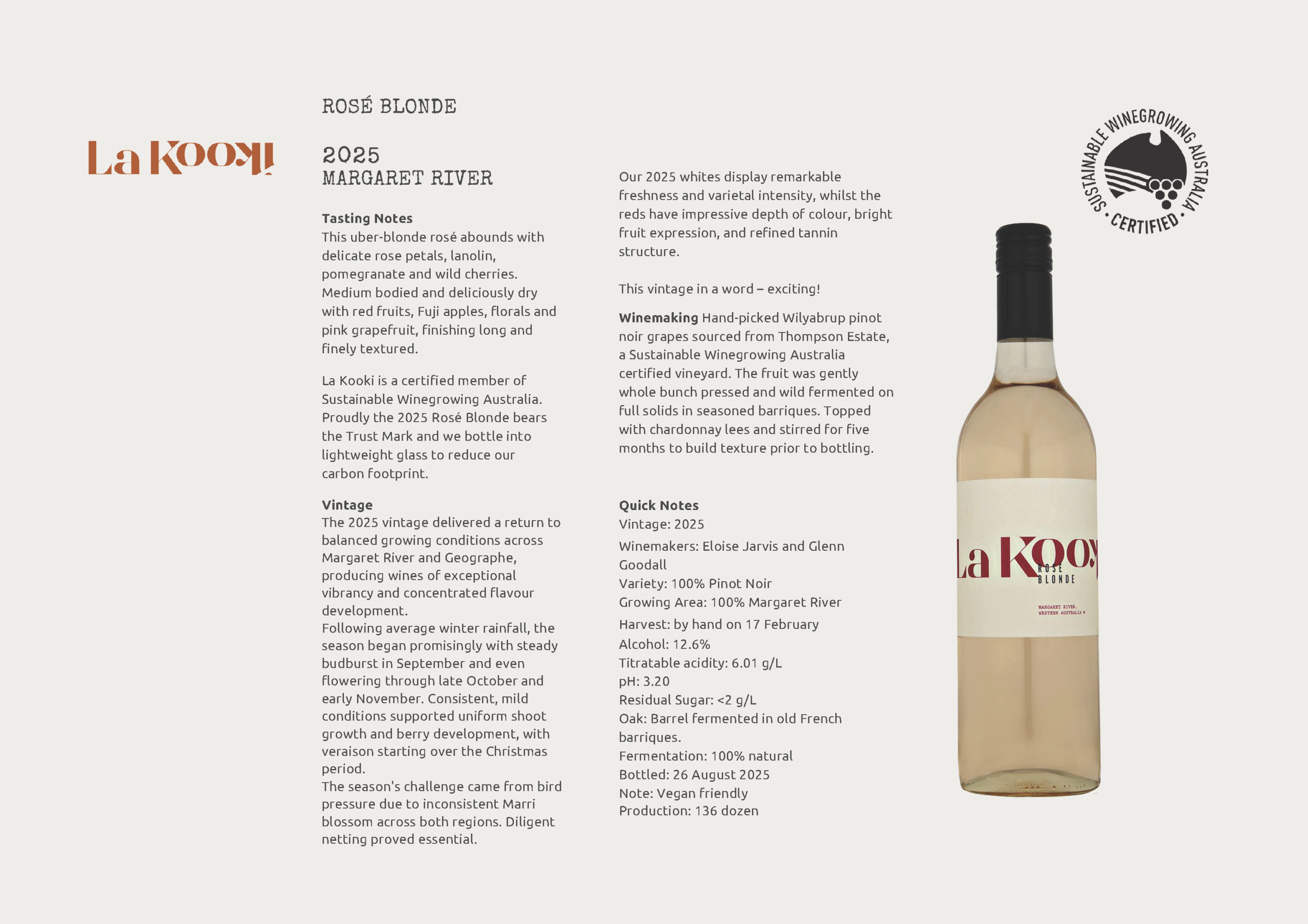 Margaret River Pinot Noir Rosé, wild fermented in seasoned French barriques.